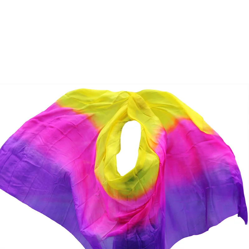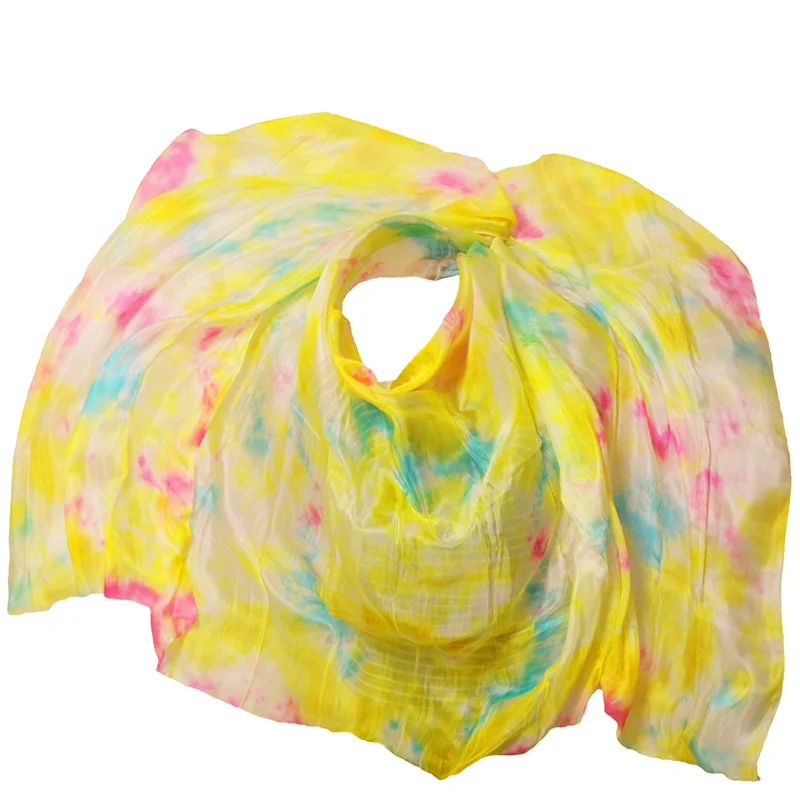 Novo laço-tintura dança do ventre 100% reais véus de seda gradiente popular cor seda mão cachecol xales para dança ou estágio 4 tamanhos